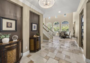 This impressive five-bedroom residence blends elegance with comfort, offering rich details and thoughtfully designed spaces throughout. Step inside to find soaring two-story ceilings in the formal living and dining rooms, tumbled travertine flooring, and walls of windows that bathe the interio [...]